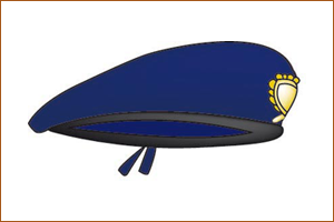 Basco Il basco modello boina "spagnolo", di colore blu notte è composto da cupola in lana a maglia con centina, fodera, protezione interna sottocupola, rinforzo temporale, orlatura e nastro scorrevole. Il nastro scorrevole in ryon 100%, alto mm 8. Le due estremità del nastro scorrevole fuoriescono, in corrispondenza della congiunzione dell'orlatura in pelle, ciascuna di cm 9 circa. Sul basco deve essere applicato lo stemma regionale di tipo ricamato. |