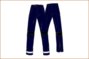 Combinazione motociclista invernale - Pantalone Il pantalone realizzato con tessuto impermeabile e traspirante di colore blu notte con gamba e ginocchio sagomati, vita con doppia regolazione a mezzo elastici sui fianchi e per mezzo di alamaro regolabile con velcro sul davanti. Apertura anteriore sul davanti con cerniera in plastica, protetta da pattina e ulteriore chiusura con bottone automatico ricoperto in gomma antigraffio dello stesso colore del tessuto. Il fondo del pantalone è a soffietto regolabile con elastico e chiuso da cerniera posteriore. Inserti di tessuto elasticizzato, 100% fibra poliammidica con elastomero, sopra al ginocchio (davanti) e all'altezza del ginocchio (dietro). Il capo risulta foderato con tessuto a rete. Una banda rifrangente di colore grigio-argento, alta cm 4 è applicata sul davanti della parte inferiore di ciascuna gamba. Due tasche in posizione classica, chiuse da cerniera e coperte da patta. Protezioni amovibili sulle ginocchia e sui fianchi conformi a UNI EN 1621-1/99. Si precisa che per il personale femminile la descrizione è come per i pantaloni da uomo, con parametri invertiti per quanto attiene la chiusura. Il pantalone ha una imbottitura amovibile, trapuntata a rombi in ovatta con alluminio accoppiata con fodera e membrana impermeabile e traspirante. Tale imbottitura è attaccata al pantalone, superiormente, a mezzo cerniera, e sul fondo delle gambe a mezzo bottone a pressione. Tessuti ed altre caratteristiche come per il giaccone motociclista invernale.