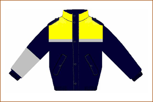 Combinazione impermeabile leggera "tipo k-way" - Giubbino Confezionato in tessuto impermeabile e traspirante lunghezza ¾, colore blu notte, maniche a giro con polso in elastico, composto da due parti anteriori ed una posteriore. La parte superiore del capo si prolunga a formare un collo a fascetta che racchiude un cappuccio. Il giubbino è foderato internamente con tessuto a rete. Tutte le cuciture del tessuto esterno sono termonastrate da apposito nastro per impedire il passaggio dell'acqua. Chiusura centrale a mezzo cerniera coperta da doppia battuta chiusa da velcro. Tasca a sinistra in fondo chiusa da cerniera a cursore reversibile e coperta da aletta inserita rispettivamente nella cucitura del fianco e del davanti; tale aletta è presente anche sul lato destro. Sul corpo del giaccone a cm 30 circa dalla base del collo, davanti e dietro, deve essere applicato a transfer un nastro di colore grigio rifrangente, alto cm 3 circa. Tale nastro deve essere previsto alla stessa altezza anche sulle braccia. Nella zona posta al di sopra del nastro rifrangente (petto, spalle, maniche e cappuccio) il tessuto utilizzato per confezionare il capo deve essere di colore giallo ad alta visibilità. Sul petto sinistro etichetta "POLIZIA LOCALE" (carattere Arial maiuscolo), di colore grigio rifrangente su fondo blu, dimensioni cm 15x2 circa, applicata a mezzo tessuto a strappo tipo maschio/femmina. Sui fianchi del giubbino a cm 5 circa dal fondo è prevista su tutta la circonferenza del capo, sotto la linea delle tasche laterali, l'applicazione di un nastro di colore grigio rifrangente alto cm 3. Sulla schiena, nella zona di colore giallo ad alta visibilità, in posizione centrata su due livelli è prevista la scritta "POLIZIA LOCALE" (carattere Arial maiuscolo), alta cm 4 circa, di colore grigio rifrangente tipo transfer. |
